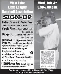 WPLLBA Sign-up Night Launch the media gallery 1 playerWest Point Little League Baseball Association Sign-Up night will be at the Nielsen Center on Wednesday, Feb 4, 5:30- 7:00 p.m. Youth Baseball Registration Form